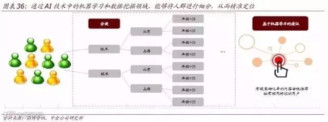 我们认为,广告(包括广义的营销)作为公司商业模式变现的第一环节,在移动互联网 流量红利逐渐褪去,用户获取成本不断高企的背景下,对 AI 技术的需求只会越来越大,但背后的商业逻辑则始终不离精准(高质高量的用户)和高效(低成本)的核心。因此我们看好 AI 和广告结合的以下三个趋势: