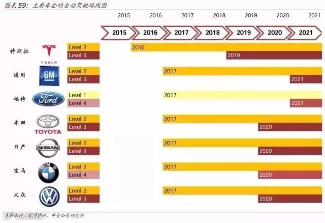 整车厂加快布局自动驾驶,预计到 2021 年全面实现 L5