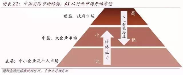 安防是人工智能在中国最容易变现的行业:十几年的平安城市建设,使中国的城市管理 者已经积累了强大的视频数据采集能力。交通拥堵及反恐等应用场景又急需最先进的人 工智能技术。