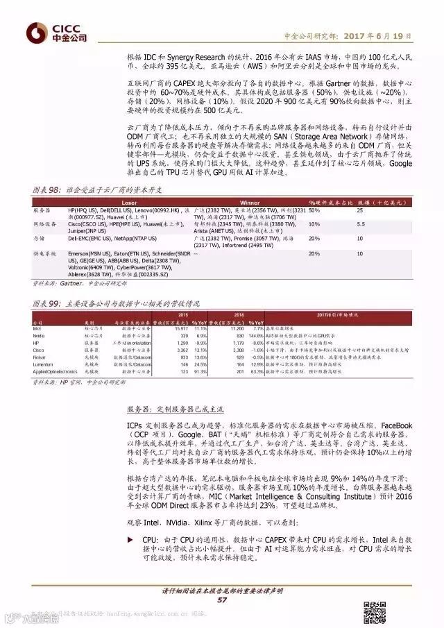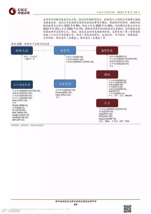 中金公司(CICC)6月19日发布了一份长达71页的人工智能的证券研究报告《人工智能时代,10 年之后我们还能干什么?》。对全球特别是中国企业当下的人工智能态势作了全面的介绍:包括BAT、华为、科大讯飞、海康威视等企业的市值、研发投入开支与研发费用率以及排名等详细信息。报告涉及安防、互联网、消费电子、汽车、医疗、通信、芯片7大行业。文章不乏非常有洞见的观点,比如:TPU等专用芯片会部分取代GPU等。这一报告是2017年以来对AI行业发展研究得最为全面和透彻的研报之一,强烈推荐。