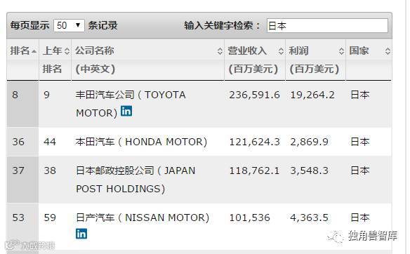 请注意,福布斯统计的数字和日本企业自己公布的财报总是有出入,其原因应该是福布斯统计的是1-12月的数字,而日本企业的财报往往是从四月一日开始。