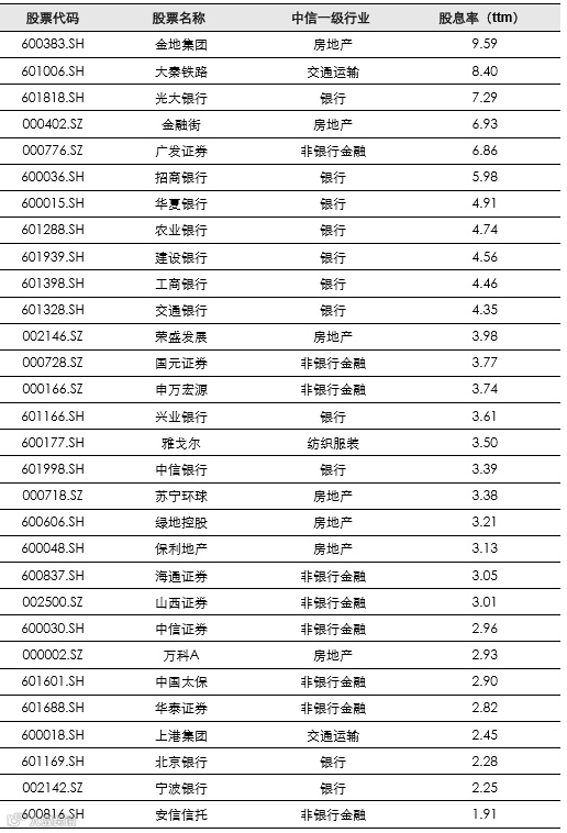 表3:本期高股息组合列表