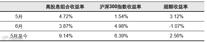 图3:2017年5月以来高股息组合净值走势图,基准为沪深300指数
