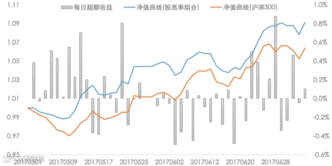 我们于样本外(2017年5月2日至2017年7月5日)跟踪高股息组合,组合相对中证红利指数超额收益为3.99%,相对沪深300指数超额收益为2.56%。