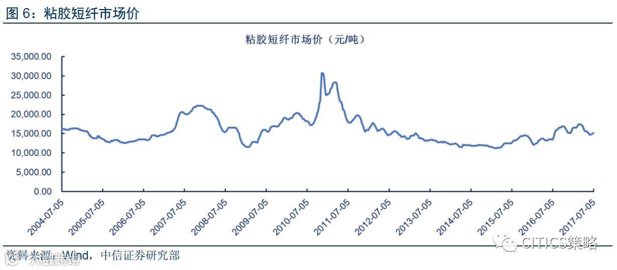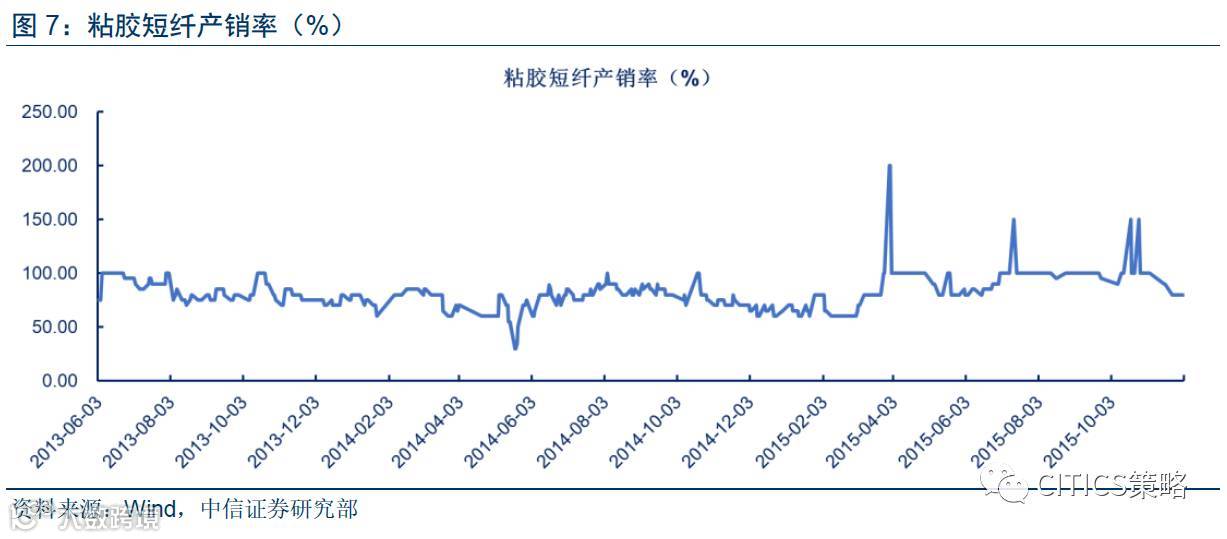 供给端:厂家实际开工接近满产,仅少数产能受限于环保因素。6月,粘胶短纤实际开工率超过95%,仅少数产能因环保压力被动降低;而到7月,已有少数因环保因素而计划减产。粘胶短纤生产对环保非常敏感,因为过程中会产生大量污染。而在当前情况下,粘胶厂方已开足马力生产,短期内不存在新增产能打破目前供需偏紧格局的可能。