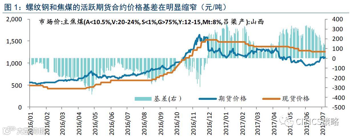 在6月25日的周报《周期股的交易性机会》中,我们提示了部分周期品价格近月合约/活跃合约的贴水压缩带来的对应周期股的交易性机会。如下图所示,螺纹钢和焦煤等周期品的近月期货合约贴水最近两周收窄明显,周期品期货价格上涨带来了对应周期股价格上行。但是,随着期货价格贴水收窄,后续的进一步参与空间有限。