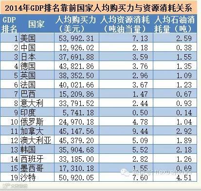 中国人太多了,如果我们每个人的石油消耗水平跟美国人一样,那么中国每年就要消耗35.35亿吨石油,这相当于2014年石油产量的84%;即使是向日本看齐,中国也要消耗2014年石油产量的50%。随着石油储量的减少,产量很可能不会增加反而会减少,那么中国资源用的多了,其他发达国家的资源用量一定会减少。前文说过生活水平与资源消耗量是息息相关的,那么发达国家国民的生活水平就很可能出现下降。