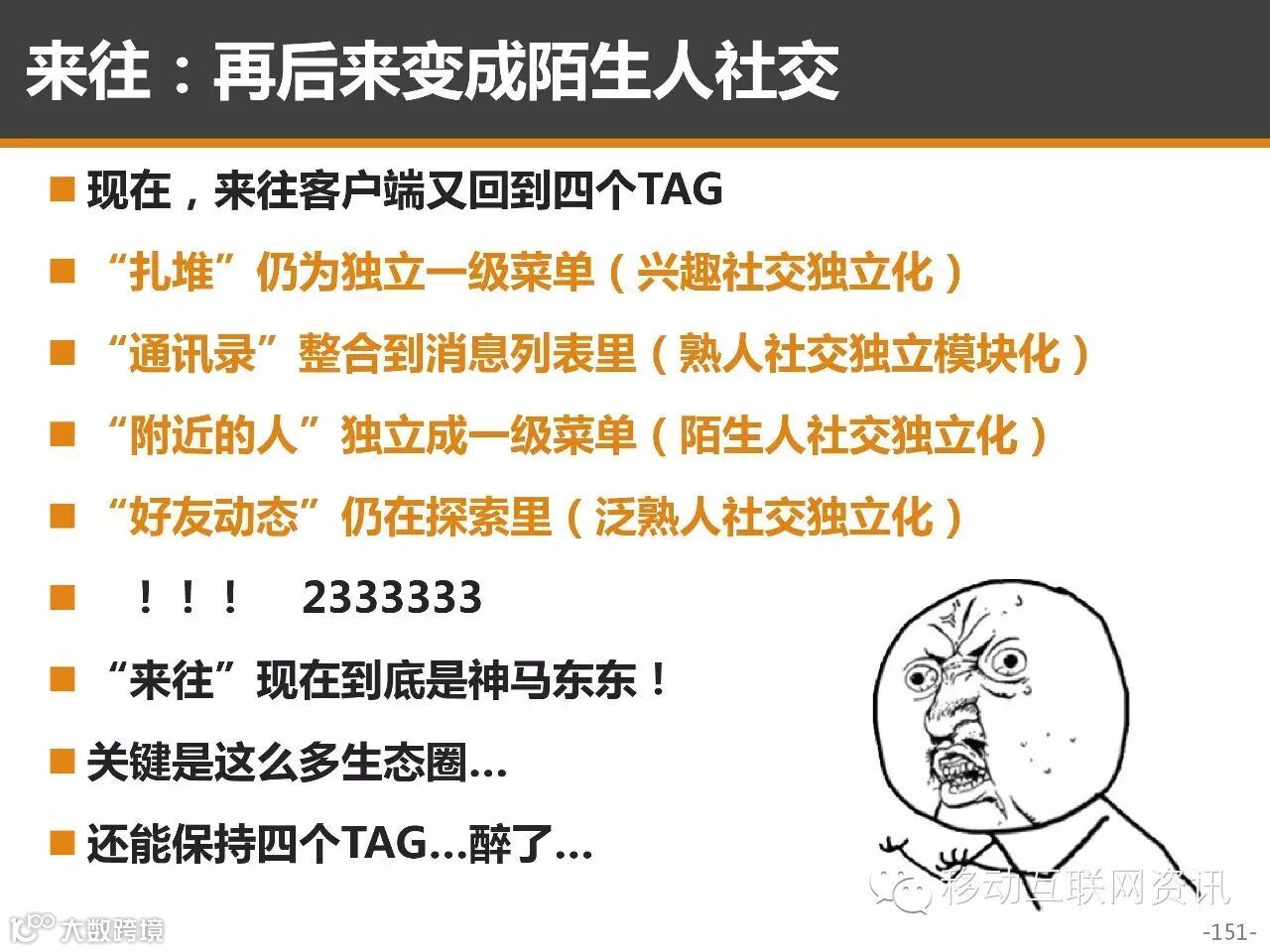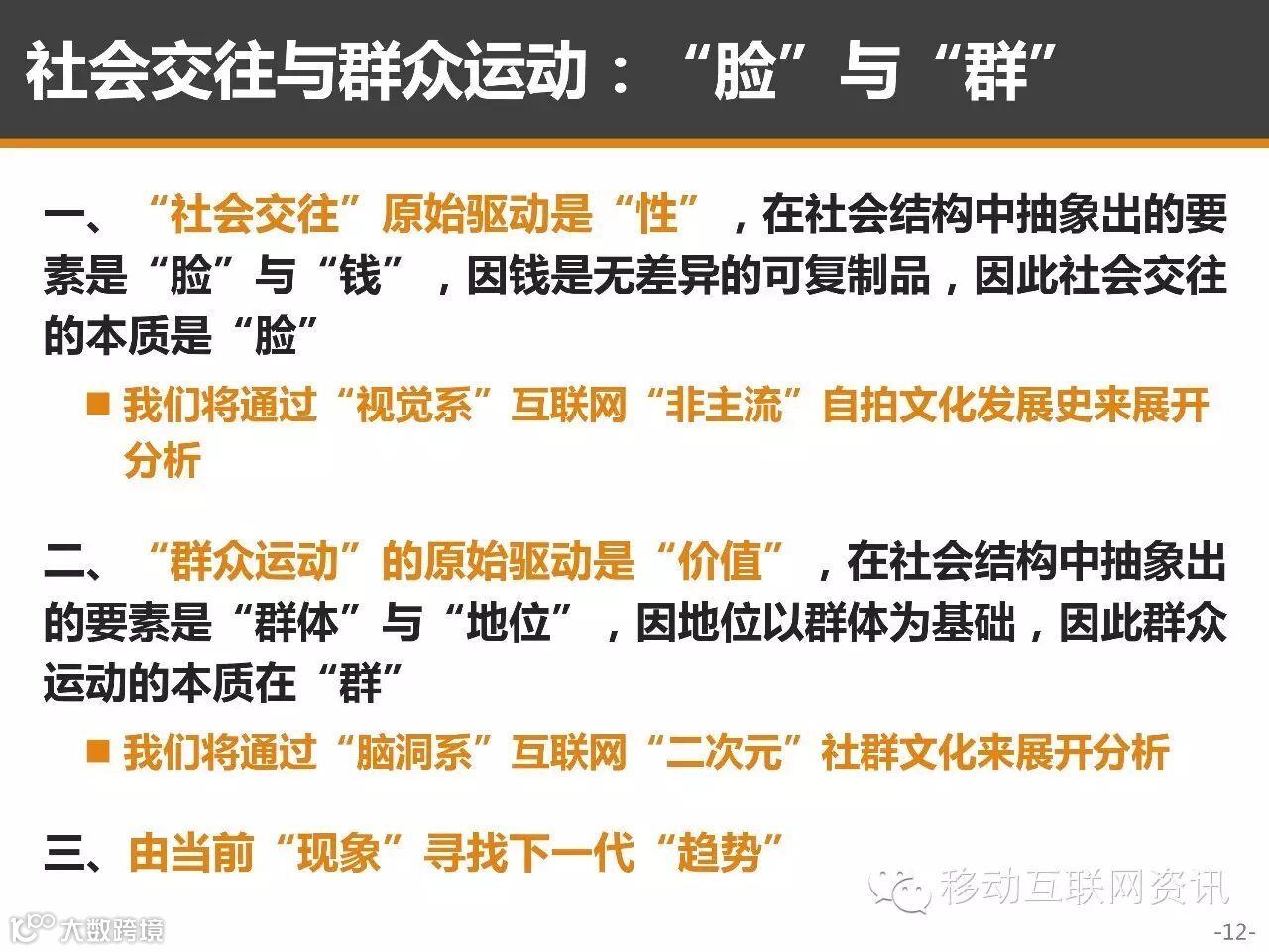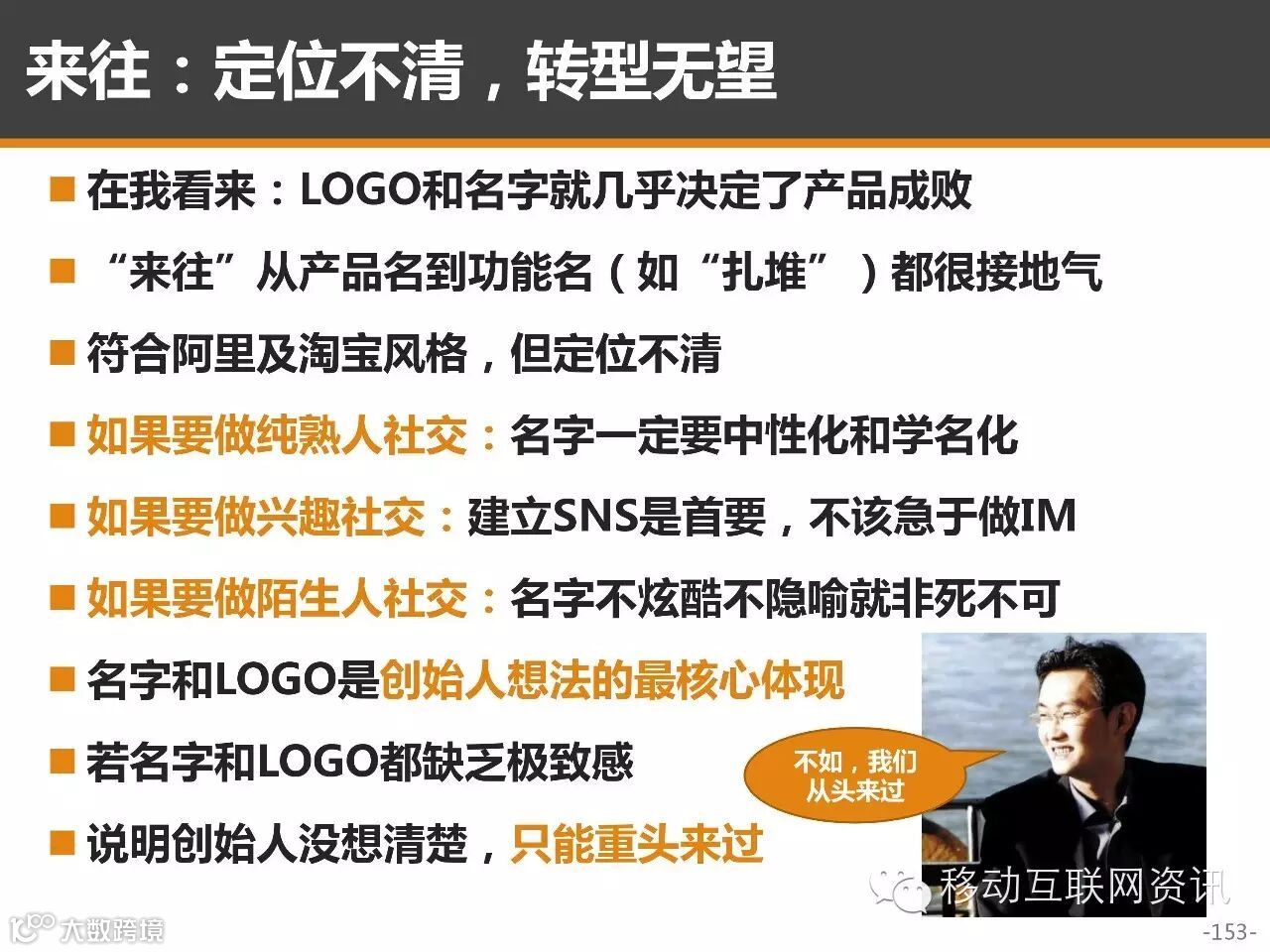 巴巴集团演讲PPT(163页),较腾讯演讲PPT增加了大量新内容,进一步梳理了中国青少年亚文化的现象和实质,并结合阿里的无线战略作了分析。