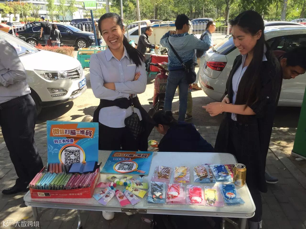 图中桌子上摆的东西核桃乳不是交行的。是图中右边那个女生的。她推的是“推职”和“来人到家”,前者是一个地推界的公众号,后者是一个家政的公众号。她是借“帮我操作”之机,趁我不注意关注了2个号。所以从她这里获得核桃乳一罐,小手机链一个,2份赠品。当然,不点破她只会给一个。