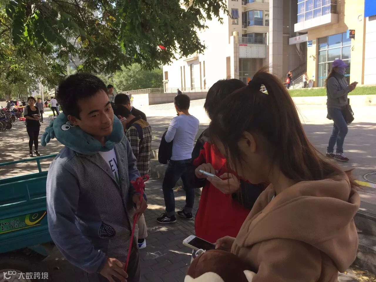 借贷宝4号点。直接摆在去汉堡王的路上的台阶上截取流量。不说你会不会以为这里卖玩偶呢?