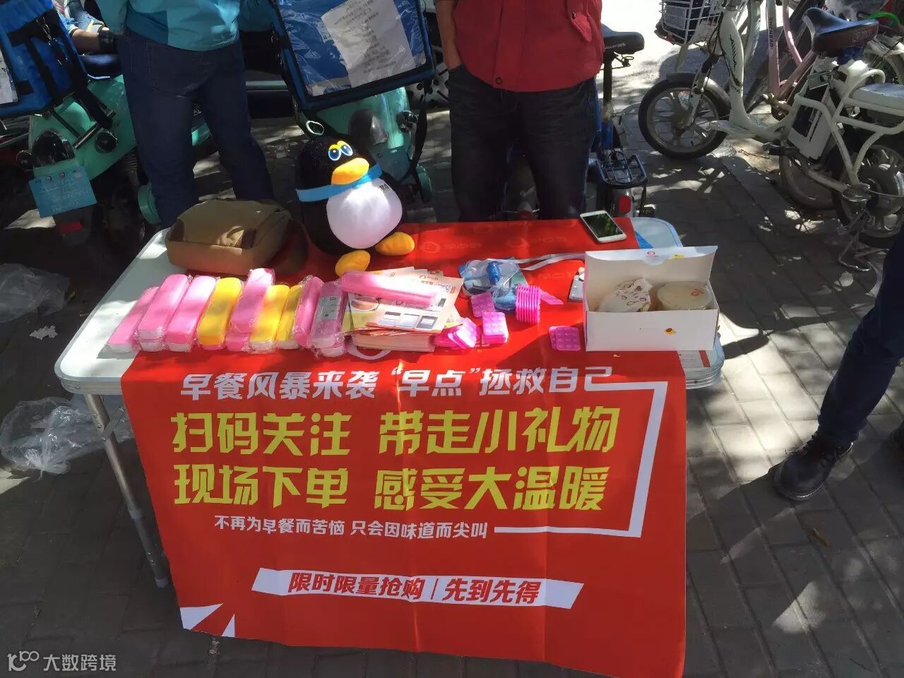 借贷宝2号点。借贷宝的地推属于外包,没有易拉宝、桌子摊位、海报等,只有人和礼品。