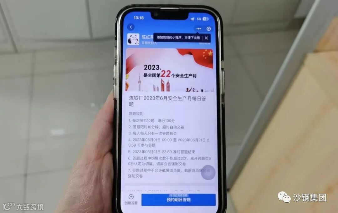 为契合安全月活动主题,营造人人参与的氛围,炼铁厂在全厂范围内开展了“安全知识”线上答题活动,通过全员 “打卡、做题”,加强安全教育,并将班组参与率纳入班组长月度履职对标,对活动参与性高、综合排名高的相关人员实施厂长基金奖励。