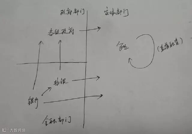 于是,现在的局面是,由于政府部门、非银部门作为信用中介的存在,监管当局并不能精确掌握整个银行体系的杠杆水平。我们当然更不可能掌握,但我们仍可尽可能去做大致测算。为此,我们首先要初步理清资金流向,然后在此基础上,再大致测算杠杆水平。