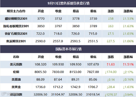 9月13日,国内钢材市场价格偏强运行,唐山迁安普方坯出厂价稳报3720元/吨。13日黑色期货市场飘红,国内钢材现货市场成交尚可,不过华东地区受台风影响,整体出货不畅。