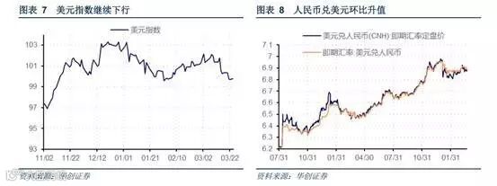 上周五美元兑人民币即期汇率报收6.8876,环比下行209bp;美元兑离岸人民币即期汇率收于6.8802,环比上行5 bp;离岸与在岸人民币汇率差收窄至74 bp(图8)。美元指数回调、央行上调政策性利率是在岸人民币兑美元升值的主要原因。外管局此前一周公布的2月份跨境资金流动数据显示,银行代客涉外人民币收付差额已连续三个月大幅收窄,反应自去年11月以来央行对于人民币跨境流动加强监控,在一定程度上缓解国内资本外流压力。