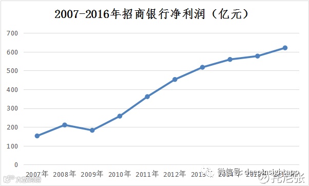 如下图所示,从2007年到2016年这段时间里,招商银行的净利润水平始终呈现出良好的增长态势,从152.43亿增长到620.81亿,公司年化净利润增长率为16.88%,经营业绩非常优秀。但如果在2007年买入招商银行的话,当时公司股价为21.70元(2007年收盘价),截止到2016年公司收盘价为17.60元,长期投资招商银行的投资者不仅没有得到任何收益,反而仍然处于被套的尴尬局面。解释这种股价和业绩长期背离的秘密在于公司的估值。