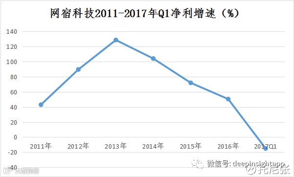 如下图所示,事实上从2014年以后,网宿科技的增长速度明显放缓,但市场主流观点依然认为能保持30%以上的增长,结果一份利润下滑的业绩预告犹如一锤砸懵了投资者。对于这样一个竞争加剧、没有护城河的行业,公司的成长是很难有保证的,正如彼得·林奇所言,他更青睐于稳定增长甚至是零增长行业中的成长股。很多人只简单的学会了PEG,学会了低估值+高成长这样一种粗放的数学比较,但忽视了从行业及企业的基本面出发,审度公司经营的护城河及壁垒。