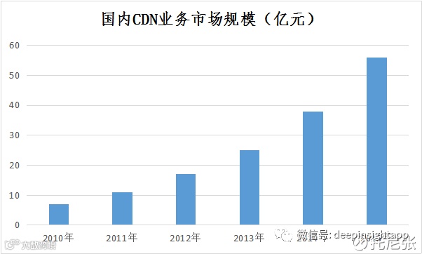 以国内CDN业务曾经的寡头网宿科技为例:如下图所示,国内CDN业务市场规模快速增长,从2010年以来保持50%左右的增长速度,行业发展势头非常良好。作为曾经的CDN业务寡头,网宿科技从上市以来就受到投资者追捧,被认为是创业板的成长标杆。大幅增长的公司利润摊低了估值水平,表面上看29倍的市盈率,结合过去三年74%的年化复合增长,简直是最优秀的成长股。事实上不少的投资者都把网宿科技当成是低估值、高成长的典范。