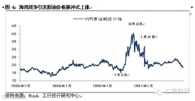 这次战争爆发的时间点是1990年8月2日,但是WTI原油期货价格从7月下旬就开始了上涨行情,等到战争真正开始的时候原油价格已经上涨了36%,可见战争预期对于原油价格的推动作用。