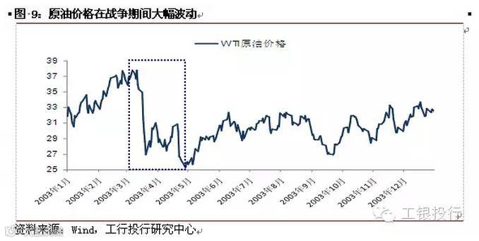 伊拉克战争(2003.3-2003.5),原油价格出现诡异波动,黄金在战争前上涨明显,工业品价格基本未受影响