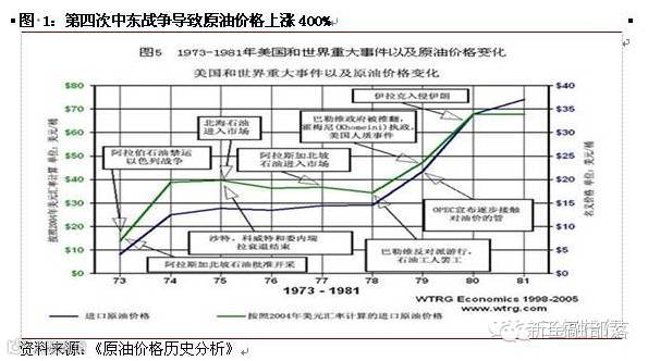 第四次中东战争(1973.10.03-1973.10.22),原油从3美元暴涨至13美元,涨幅高达400%,带动大宗商品一轮牛市行情