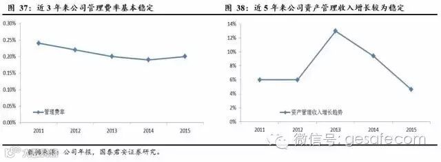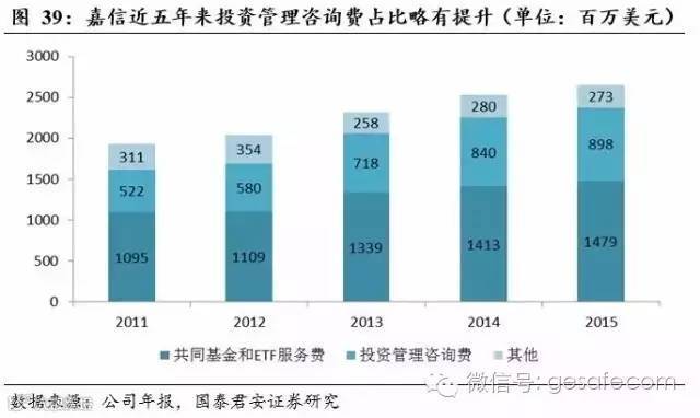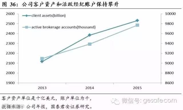 近年来虽然资产管理费率略有下降,但得益于资产规模的扩大,嘉信理财的资产管理收入仍然呈上升趋势。2015年嘉信资管收入为26.50亿美元,较2014年增长了5%。