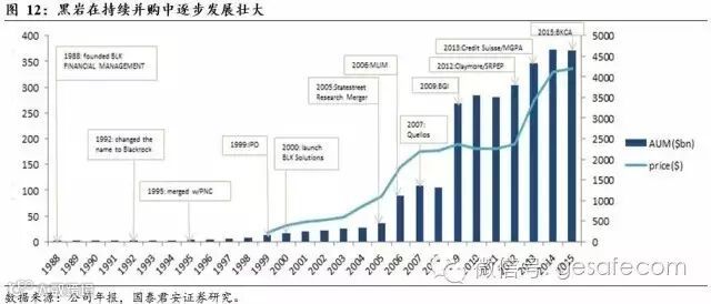 1999年,BLK以每股14美元的价格在纽约证券交易所公开上市,AUM为1650亿美元,2004年这个数字增长到了3420亿。