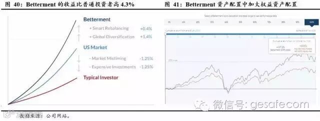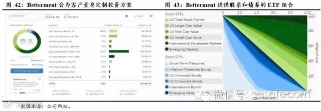 迈向智能:美国的Wealthfront,Betterment开创了人工智能理财产品的先河,即通过优化程序为客户“量体裁衣”,设计组合配置策略;近年来美国大型资管机构也在跟进,如资管巨头Vanguard近年也在大力推进人工智能理财产品。