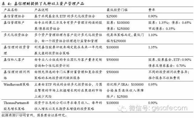 策略差异:大型基金公司主要依靠ETF产品,即发行行业指数基金,精品型的资产管理机构主要依靠特定的投资策略,如对宏观对冲/不良债权/私募股权投资等有独特策略;也有部分机构放弃资产端而抢占流量端,这体现为在平台上聚拢流量,同时提供配置ETF组合的服务。