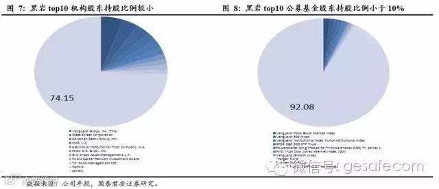 作为全球最大的资产管理机构,Blackrock(译为黑岩,简称BLK)的股权结构较为分散,内部股东持股比例仅有5%,机构和共同基金持股比例占71%,但持股比例较为分散。