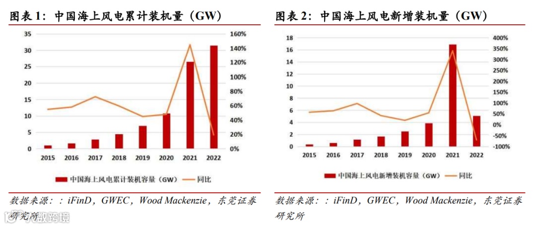 3)后市展望:风机大型化发展趋势明确,海上风电迈向深远海,在海上风电方面,多省市陆续出台了政策对海上风电项目给予补贴。海上风电目前正在逐步从近海向深远海发展,离岸距离和水深逐步突破,长远来看,远海风电具有巨大的可开发空间,但深远海风电项目当前的建设成本仍相对较高,地方政府出台海风补贴政策有利于助力海上风电在朝着深远海方向发展的过程中实现更好的过渡。