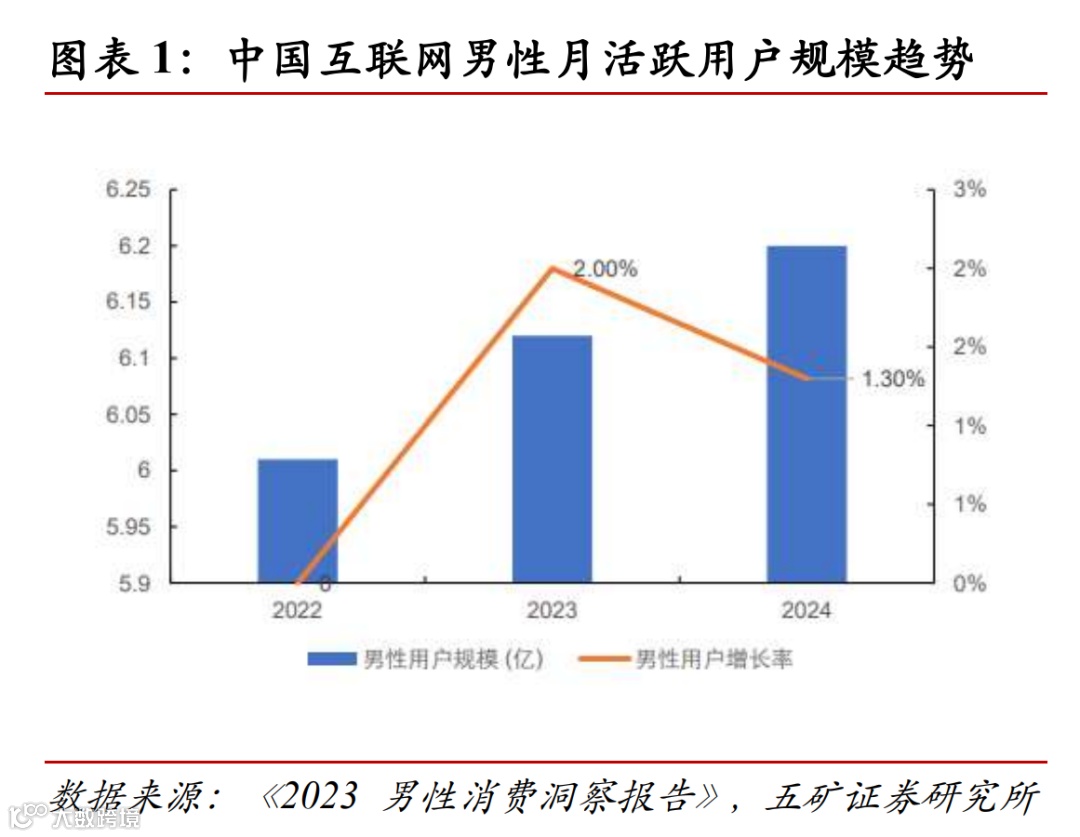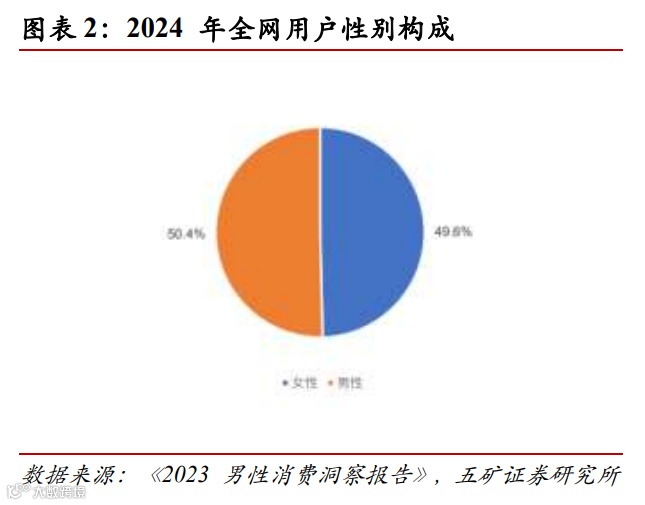 1)伴随智能设备与服务的普及,中国移动互联网男性越活用户规模达 6.2 亿元,占全网 50.4%。同时,在全网用户人均月度使用时长同比下降 1.2%的背景下,男性用户人均使用时长同比增长了 1.0%。