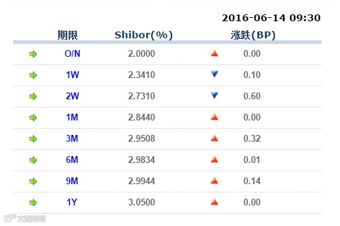 5 周二上海银行间同业拆放利率(Shibor)