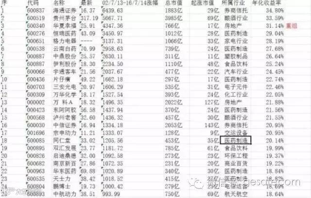 好了,再来看5年的涨幅排名情况: