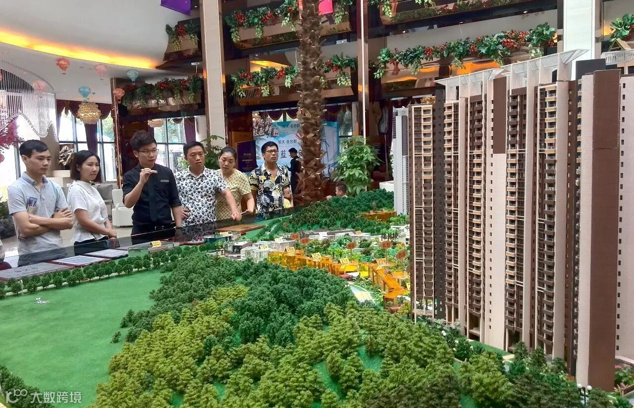 在广东省佛山市的某楼盘售楼处内,市民在参观选购。 新华社记者 卢汉欣 摄