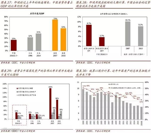 我们不否认,2016 年新增住房贷款的增速或许超过了合理水平,并有可能带来潜在风险,但我们不能夸大边际影响,因为中国居民目前的杠杆水平仍然是在可承受范围内的。