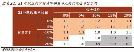 ► 21 个政策收紧的城市(包括一线城市):在个别情况下总需求可以被满足(当供应扩大超过15%;需求缩小超过15%),但供应过剩的程度非常低。