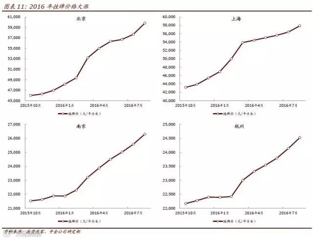 出于对利润率的保护,2016 年昂贵的土地成本和显著的溢价将激发开发商的提价意愿,在2016 年拿地过于激进的开发商压力尤甚。
