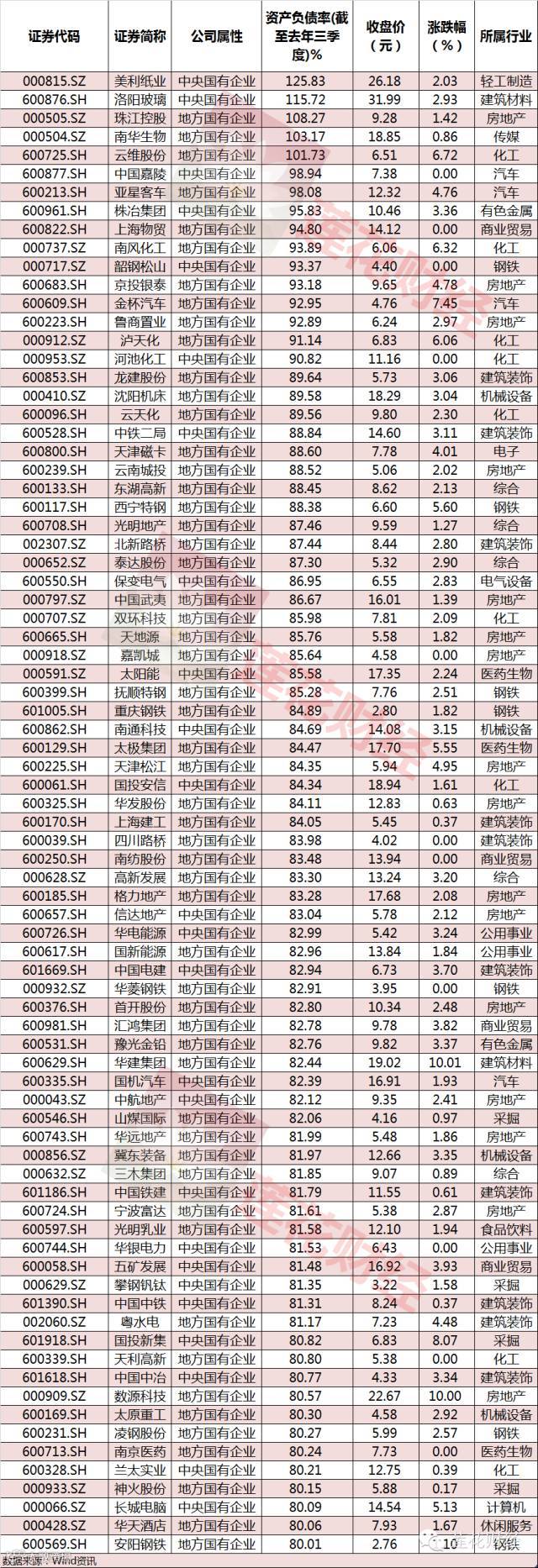 下表是A股上市公司中资产负率超过80%的国企名单,已剔除ST股及金融股。收好不谢!