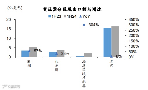 图表5:中国变压器分区域出口额与增速(1H24)