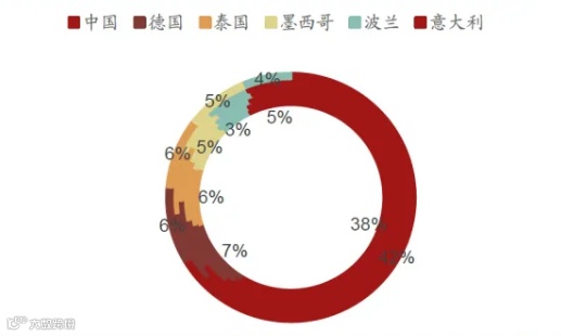 图表6:中国在全球家电出口份额从2017年的38%提升到2022年42.4%