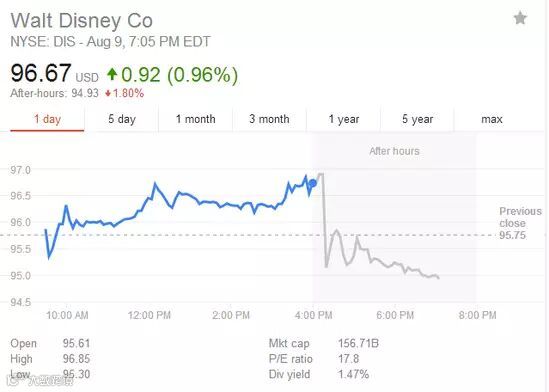 今年以来,迪士尼股价跌约9%,本周二股价收涨0.96%,公布财报后盘后交易时段跌1.8%。