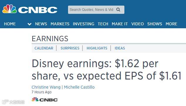 迪士尼公布二季度财报