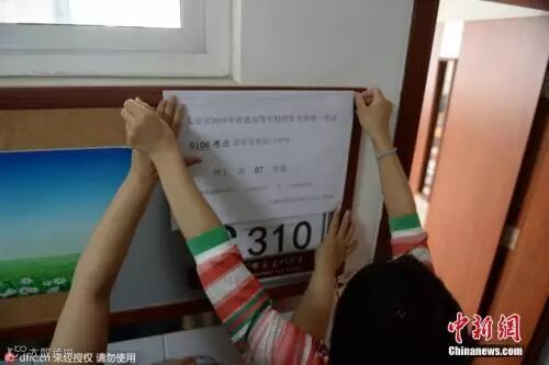 资料图:2016年6月3日,北京,东直门中学考点,教室外已贴上了统一印制的考场信息,上面显示着考点编号、名称及具体的考场号。图片来源:东方IC 版权作品 请勿转载