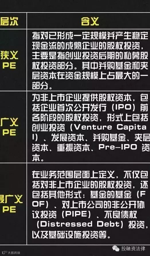 根据私募股权投资的内涵主要分为以下三类: