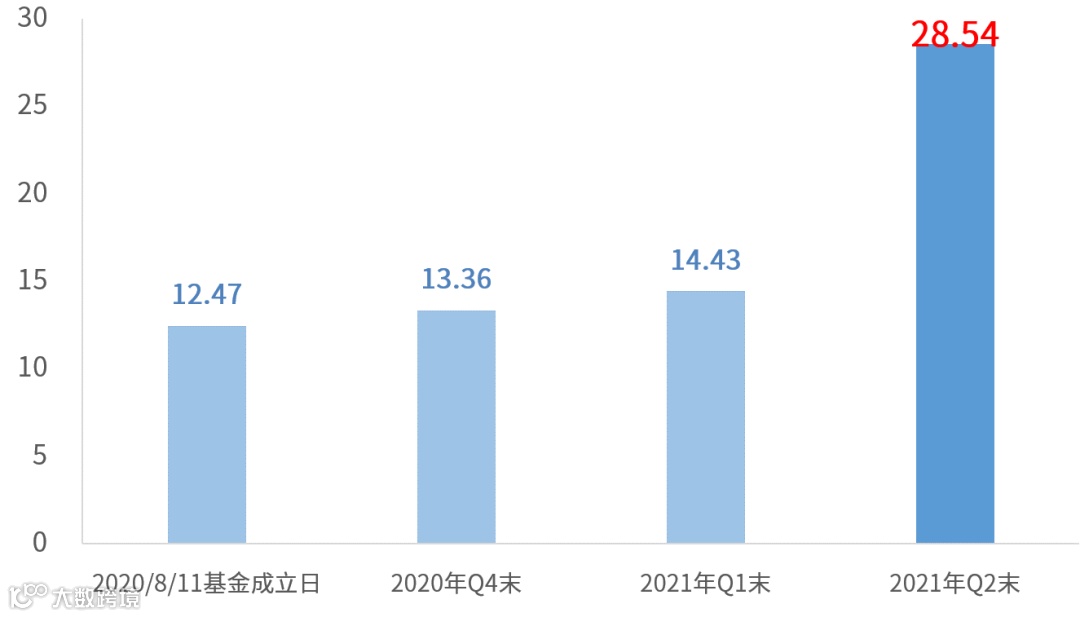 ②:数据区间为2020/8/11-2021/6/30,成立规模为12.47亿元,数据来源:基金合同生效公告。其余季度末规模数据来源:基金季度报告。