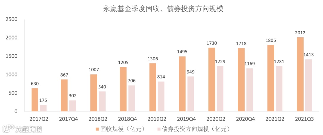 永赢稳健增强除了均衡名将常远亲自执掌外,更离不开固收团队的加持!作为银行系的公募基金公司,永赢基金具备固收板块的先天信评、风控优势。目前永赢固收投研团队超过50人,其中基金/投资经理高达22人,固收研究方面更是实现了各版块的全面覆盖。目前永赢固收规模高达2011.6亿,其中债券投资方向规模1413.4亿④!