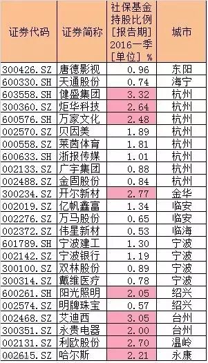 从这批新增股的区域分布看,杭州地区、宁波地区的上市公司被社保基金新增数较多。