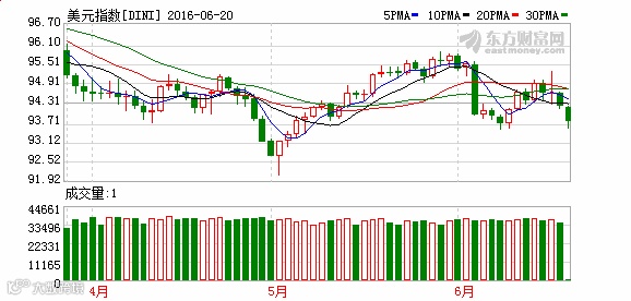 周一美元指数小幅走低,现交投于93.65关口。英镑兑美元急升逾2%,触及五个月高位,录得近八年来最大单日涨幅,因对英国民众可能在6月23日公投中投票支持退欧的忧虑缓解。