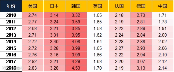 表:主要经济体R&D占GDP比重